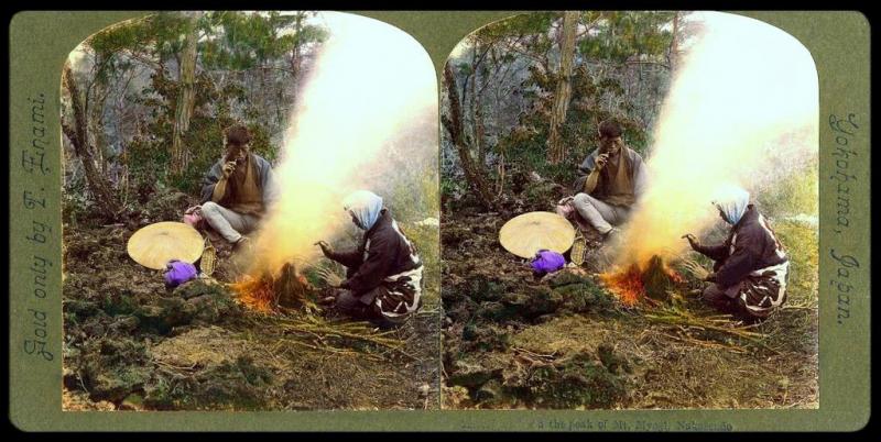Enami's focus on people would continue grow, forming an ever-increasing percentage of images as he expanded into the stereoview format. Well over half of his stereoviews (and the lantern-slides made from them) are of close, people-inclusive subjects, and mark Enami's style long after the days of "Yokohama Album Views" had passed.
