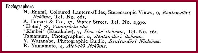 These services, along with the processing and printing of film brought in by amateurs and tourists was offered at both his Yokohama main studio, and his overseas branches [See No.19 below, and the 1901 photo of the HOVELL FAMILY] ;