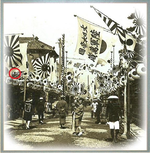 ABOVE : One of the earliest know photographs of Enami's relatively small, but highly-productive studio at No.9 Benten Street in Yokohama, ca.1894-95. Perhaps that is Enami himself, or an assistant standing in the doorway. A large, sample portrait is on display. What appears to be part of a glass skylight is seen behind bars on the second floor. I assume that larger skylights were incorporated into another part of the building. Photo possibly taken by K. Tamamura who took the photo below.