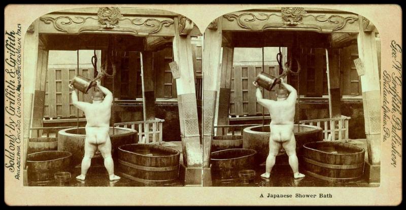 Further, Enami offered a small series of eight stereoviews depicting scenes of rural Sumo matches. As far is known, this is the largest group of Sumo titles offered amongst the many competing 3-D publishers in old Japan.