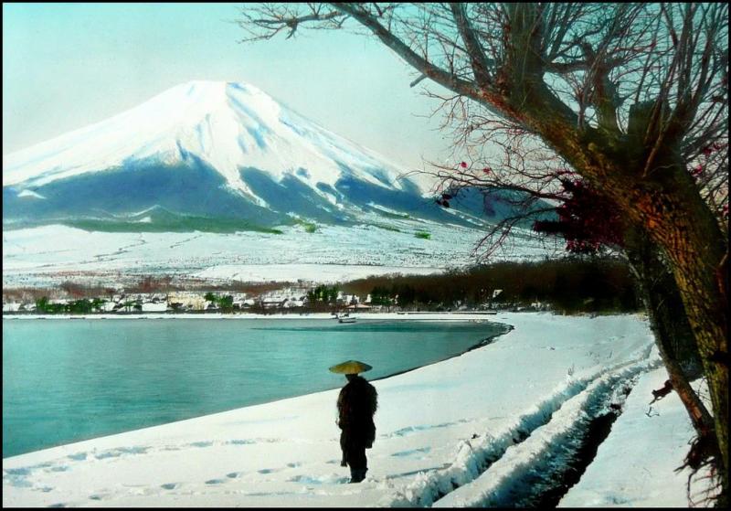 No. S-569 Snow-Capped Fuji Viewed from the Shores of Lake Kawaguchi. Ca.1907