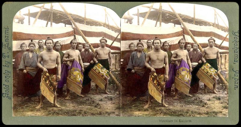 With some exceptions, all of the major commercial Japanese photographers during the Meiji-era offered at least one or two shots of Sumo Wrestlers locked in various grips, or in their victory poses.