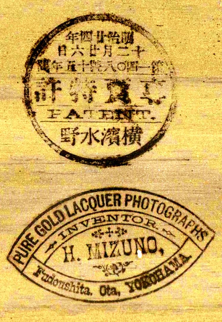 Although Mizuno is said to have been a photographer who converted his own images, he has been wrongly credited for images taken by Enami, Tamamura, and others, due to his stamp appearing on the back of the conversion work he did for them [see illustration] ;