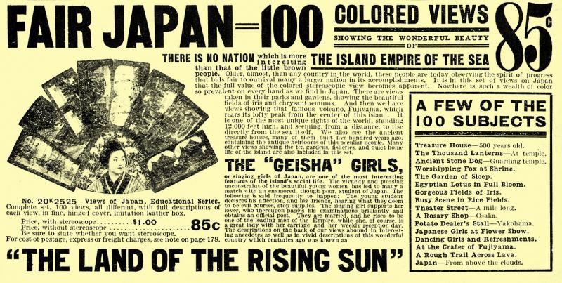 The resulting"mixed series" that utilized at least a few T. ENAMI views included several sets issuedby Underwood & Underwood, C.H. Graves' Universal Photo Art Co., Lynn Skeels' Stereo-Travel Co.,and a good percent of the Japan view published by George Rose of Australia. All of these 3-D publications werein addition to the "pure" Enami series mentioned in No.'s (23), (24), and (25) above ;